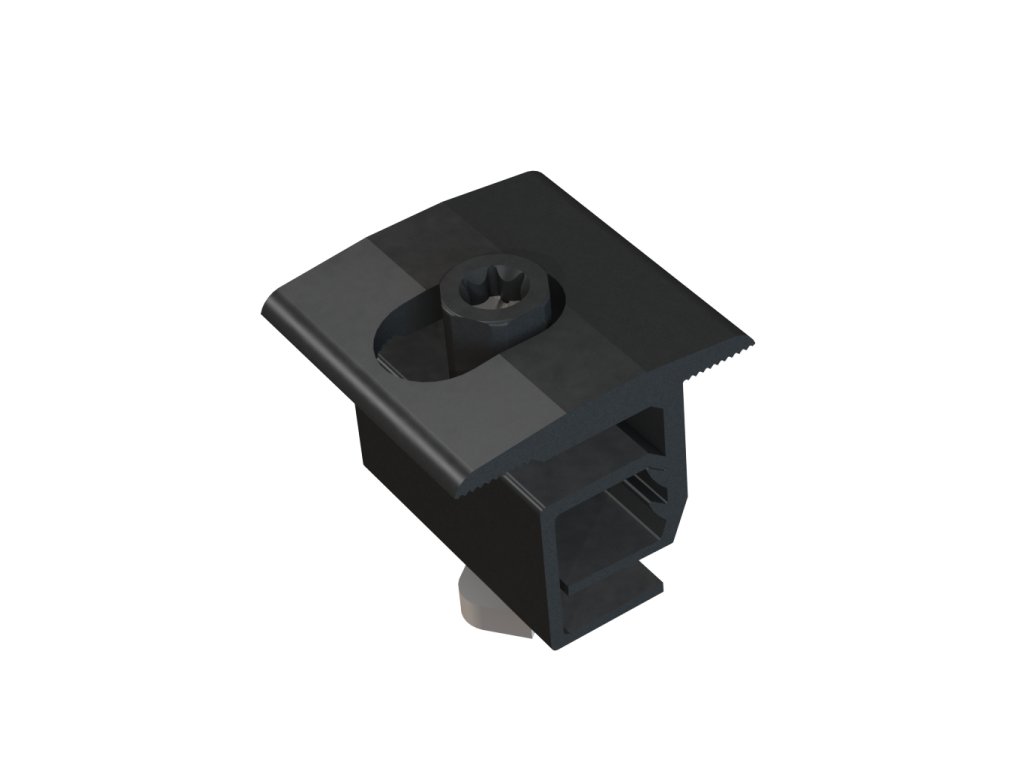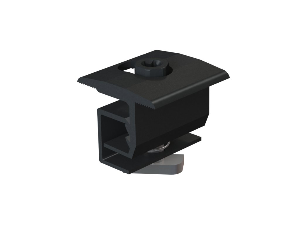 Univerzální hliníková úchytka pro pevné a bezpečné přichycení solárních panelů s rámem o tloušťce 30 nebo 35 mm ke střešní konstrukci. Díky promyšlenému designu je možné ji využít jako středovou úchytku (mezi dvěma panely) nebo jako koncovou úchytku (panel pouze z jedné strany).